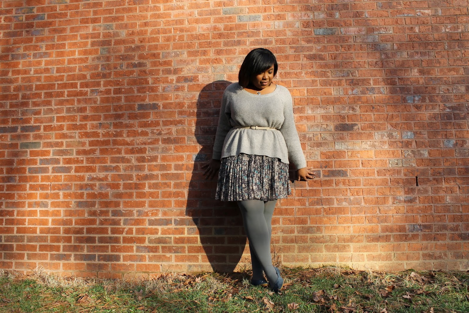 {Sweater, Skirt, Tights (Old Navy), Flats (Urban Outfitters)}